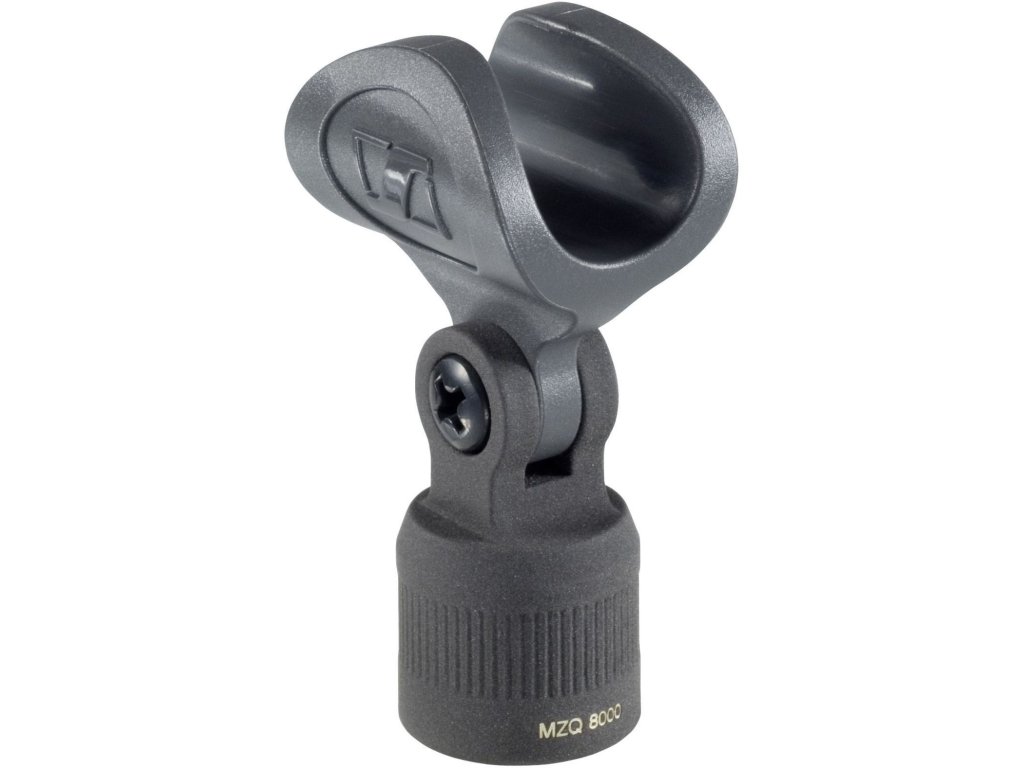 Klips do mikrofonu MZQ 8000 służy do mocowania mikrofonu MKH 8020/8040/8050. Posiada przegub z możliwością regulacji nachylenia mikrofonu oraz gwint 3/8" i 5/8" do mocowania na statywie. Produkowany jest w matowym szarym wykończeniu "Nextel".
