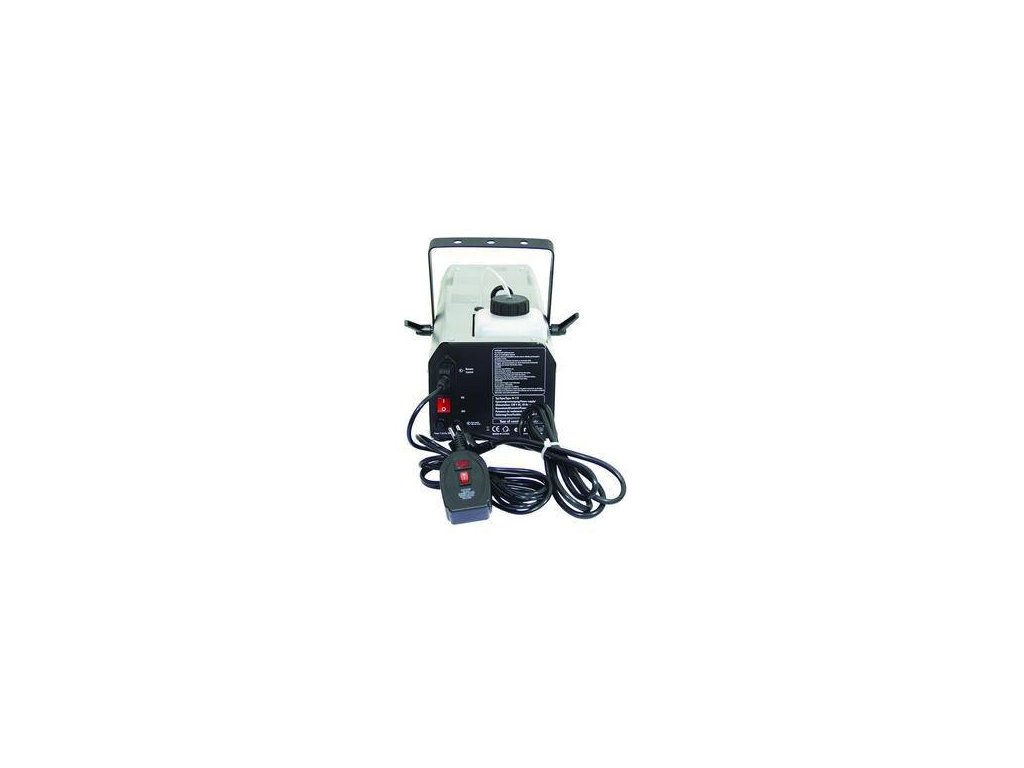 Ekonomiczny wytwornica mgły z termicznym zabezpieczeniem elementu grzejnego. Oddzielny sterownik. Uchwyt do łatwego mocowania. Odpowiedni do średnich dyskotek, hoteli, barów i sal towarzyskich. Moc 1000W, zużycie płynu 75ml/min, nagrzewanie ok. 7min., zasięg do 8m. Waga 7kg.