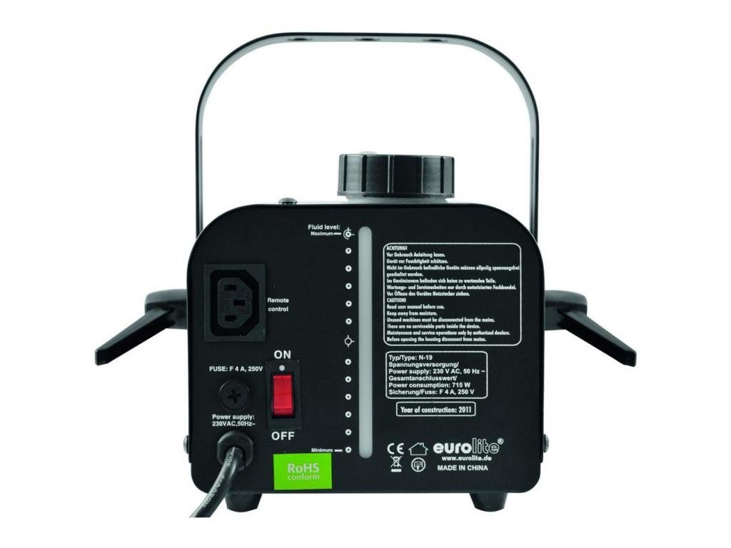 Bardzo łatwa obsługa, idealne uzupełnienie każdej imprezy. Do wytworzenia mgły wystarczy to urządzenie i płyn, który wlewasz do zbiornika. Naciskając przycisk, włączasz urządzenie i wypuszczasz tyle mgły, ile potrzebujesz. Zasięg dymu wynosi około 2,5 m, moc 700 W, pojemność zbiornika urządzenia 1 l. Dostarczany z pilotem zdalnego sterowania, możliwość zawieszenia.