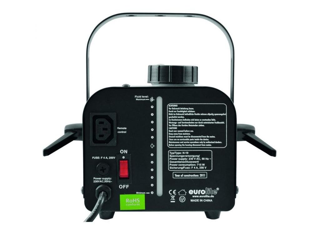 Bardzo łatwa obsługa, idealne uzupełnienie każdej imprezy. Do wytwarzania mgły wystarczy to urządzenie i płyn, który wlewa się do zbiornika. Naciskając przycisk, włączasz urządzenie i wypuszczasz tyle mgły, ile potrzebujesz. Zasięg dymu wynosi około 2,5 m, moc 700 W, pojemność zbiornika urządzenia 1 l. Dostarczany z pilotem zdalnego sterowania. Możliwość zawieszenia.