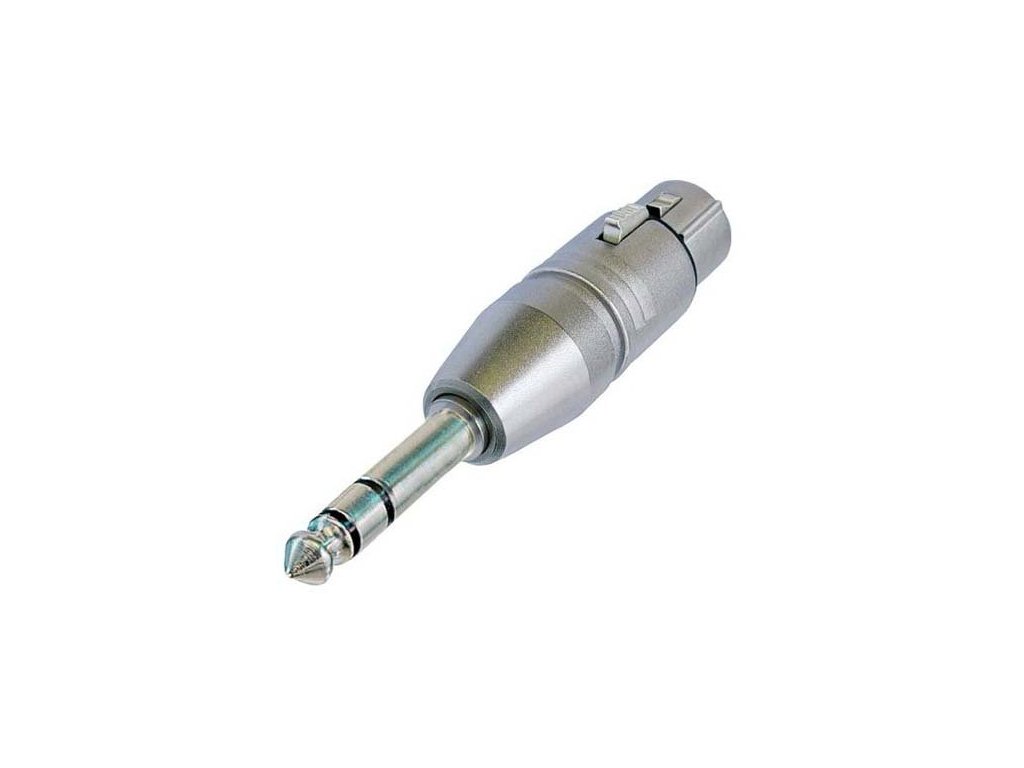 Adapter/Redukcja kompaktowa okrągła, 3-pinowe złącze XLR żeńskie / Wtyk 6,3 złącze symetryczne (stereo) męskie, powierzchnia obudowy Nikiel.