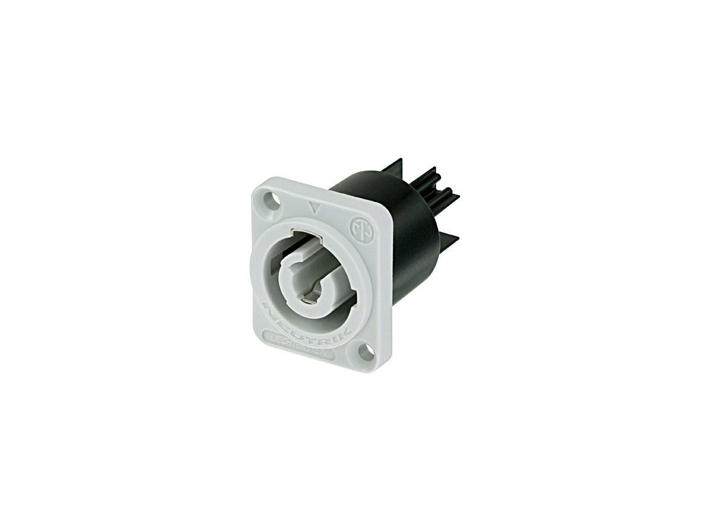 3-biegunowe panelowe złącze zasilania AC PowerCON (B-OUT/wyjściowe) 250V/20A, seria PowerCON 20, męskie, posrebrzane styki, kolor obudowy Szary, otwór montażowy D-Size.