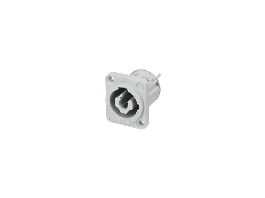 Panelowe wyjście (OUT) złącze serii powerCON z płaskimi zaciskami 3/16", męskie. Kolor szary.