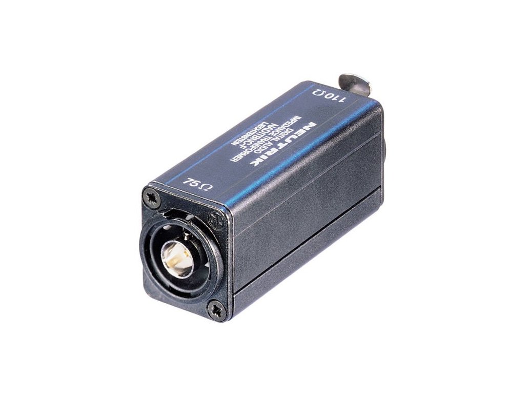 Adapter impedancji, złącze panelowe żeńskie XLR 110 Ω wejście - żeńskie BNC 75 Ω wyjście.