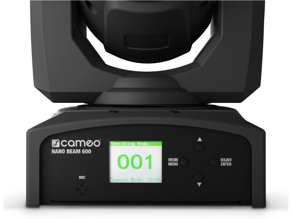 Kompaktowa oprawa oświetleniowa oferuje 5 trybów sterowania DMX. Ponadto NANO Beam 600 oferuje automatyczną pracę i aktywację dźwiękiem z oszałamiającymi wbudowanymi programami, funkcjami stroboskopowymi i ściemniania oraz funkcją autonomiczną i funkcją master / slave. Duży wyświetlacz TFT z 4 przyciskami sterującymi umożliwia łatwą nawigację po menu i konfigurację.