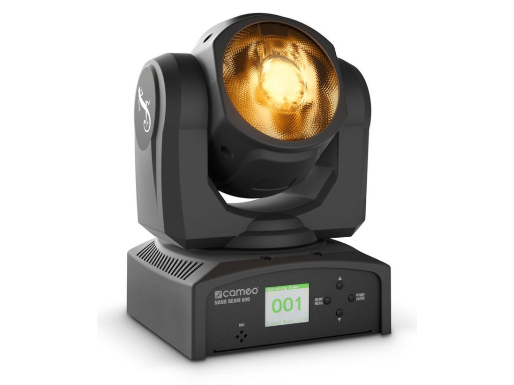 Cameo NANO Beam 600, który zajmuje niewiele miejsca, a jednocześnie zapewnia wysoką wydajność, to miniaturowa ruchoma głowica zapewniająca obrót o 540 ° i pochylenie o 270 °. Jest wyposażony w jedną 60W diodę LED RGBW i tworzy bogate mieszanki kolorów oraz wąsko skupioną wiązkę 5,2 °.