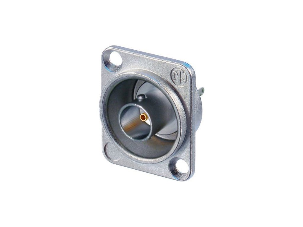 Wysokiej jakości izolowane złącze BNC panelowe 75 Ω do przesyłania sygnałów szeregowych i cyfrowych (HD), wersja lutowana, kolor srebrny.