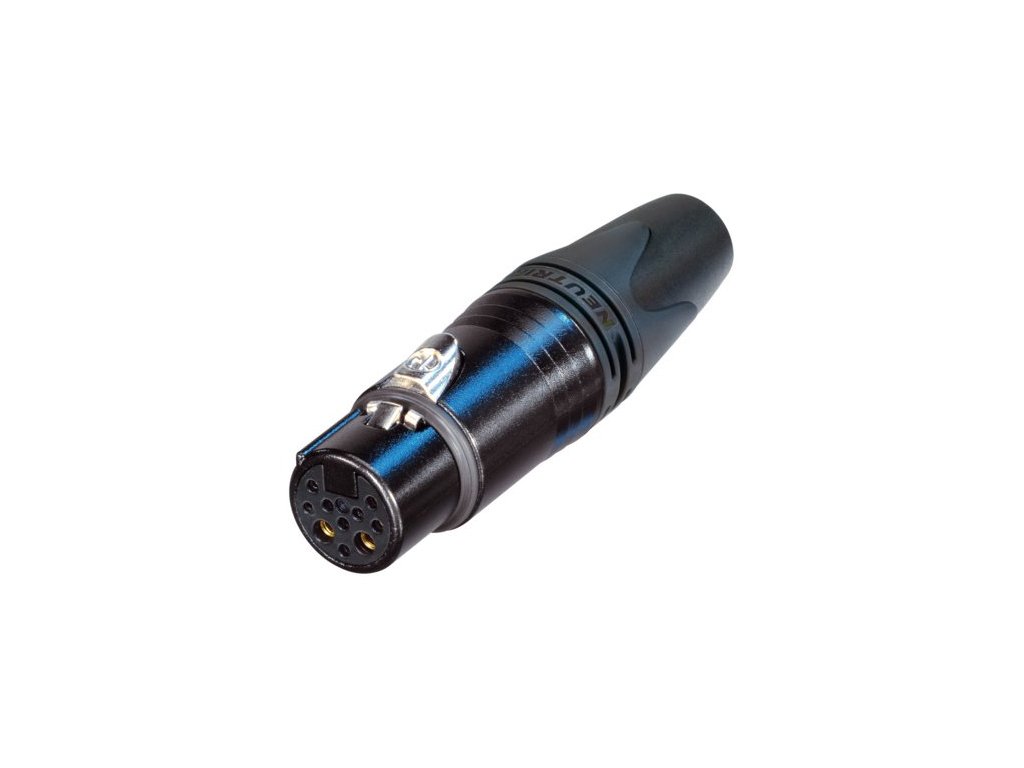 Złącze kablowe XLR 8+2 pin, żeńskie. Metalowa obudowa, kolor czarny.