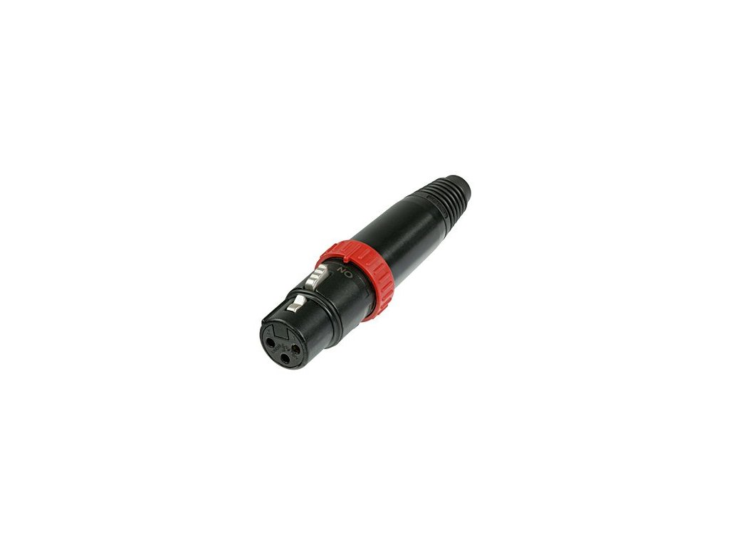 Kabelowe 3-pinowe złącze XLR z przełącznikiem, żeńskie. Metalowa obudowa, kolor czarny.