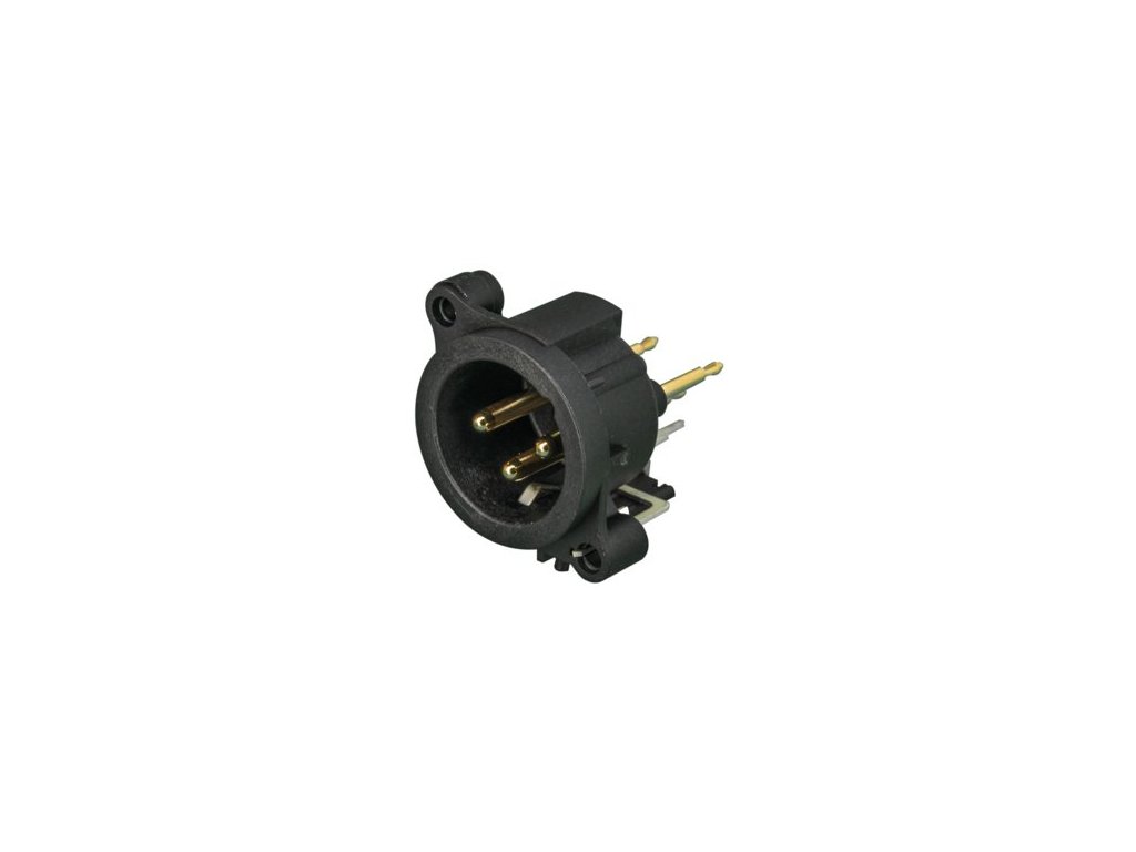Panelowe 3-pinowe gniazdo XLR, męskie. Uziemienie: oddzielny styk uziemiający na obudowie wtyczki i panelu przednim. Plastikowa obudowa, pionowy montaż na PCB.