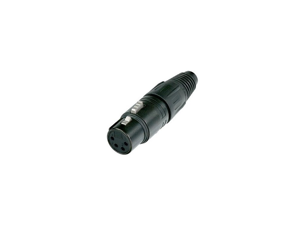 Kabelowe 4-pinowe złącze XLR, żeńskie. Metalowa obudowa, pozłacane styki, kolor czarny.