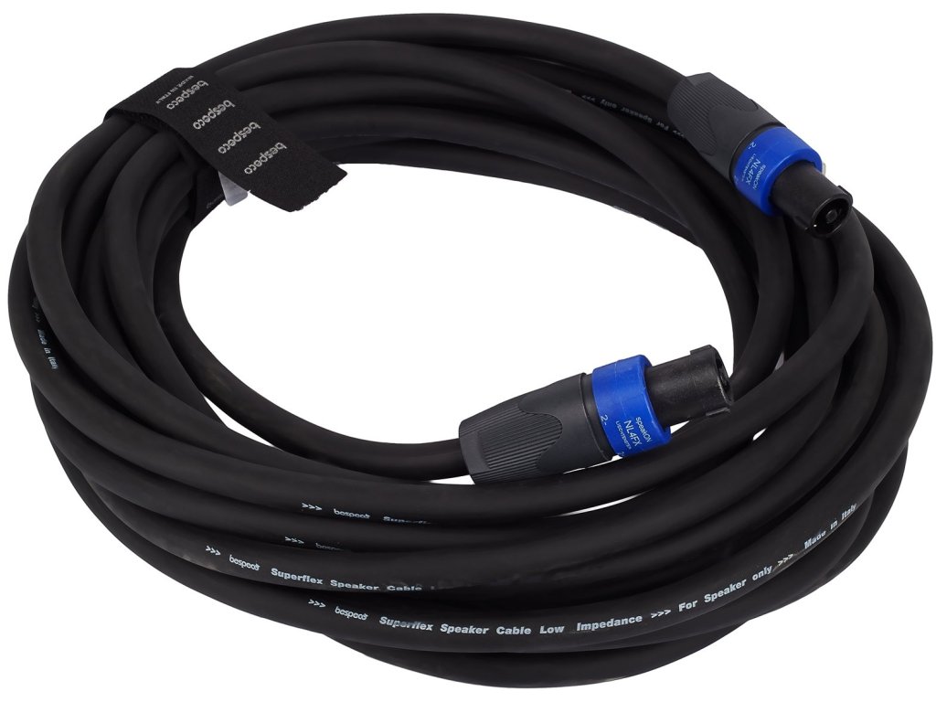 Ten czterobiegunowy kabel głośnikowy z serii Bespeco Professional posiada przewodnik wykonany w 99% z miedzi beztlenowej (OFC) i wewnętrzną półprzewodzącą powłokę PVC, dzięki której nie generuje żadnych szumów. Do jakości dźwięku przyczynia się również spiralne ekranowanie na ponad 94 procentach przewodnika lub doskonałe złącza Speakon renomowanej marki Neutrik. Oczywistością jest odporna i jednocześnie elastyczna powłoka z PVC i wulkanizowanego silikonu.