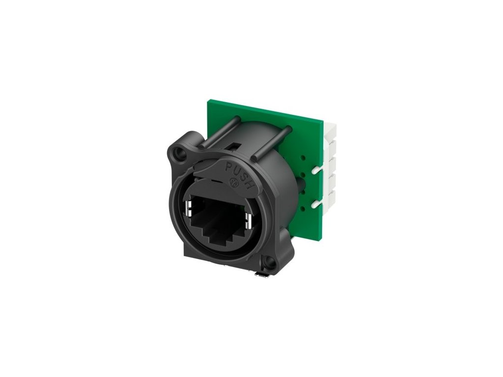 Złącze Neutrik NE8FAV-YK-DAE to panelowe złącze RJ45 z zaciskami IDC Krone, zaprojektowane z myślą o maksymalnej efektywności i oszczędności miejsca. Jego solidna konstrukcja umożliwia stosowanie z etherCON NE8MX* lub dowolnymi standardowymi złączami RJ45. System blokady z bezpiecznikiem zapewnia bezpieczne mocowanie, a możliwość wyboru uziemienia gwarantuje elastyczność podczas instalacji. Złącze jest kompatybilne z CAT5e i spełnia standardy TIA/EIA 568C oraz ISO/IEC 11801, co gwarantuje wysoką jakość transmisji danych. Montaż jest szybki i prosty dzięki zaciskom IDC Krone. To złącze obsługuje PoE typu 3 klasy 6 (60W) zgodnie z IEEE 802.3bt, co czyni go idealnym do nowoczesnych zastosowań Ethernet.