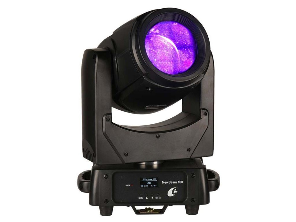 Ruchoma głowica EVOLIGHTS NEO BEAM 100W LED posiada tarczę z trzynastoma filtrami, które barwią światło, oraz koło gobo z 11 wzorami kształtowania wiązki. Bardzo ciekawy efekt tworzy obrotowy pryzmat z sześcioma i dwunastoma fasetami tworzącymi imponujące rozety, a także filtr mrożący rozpraszający skoncentrowany strumień światła. Dużą zaletą reflektora LED jest również elektroniczne ustawianie ostrości, pełnozakresowy ściemniacz i funkcja stroboskopu z regulowaną częstotliwością błysku.
