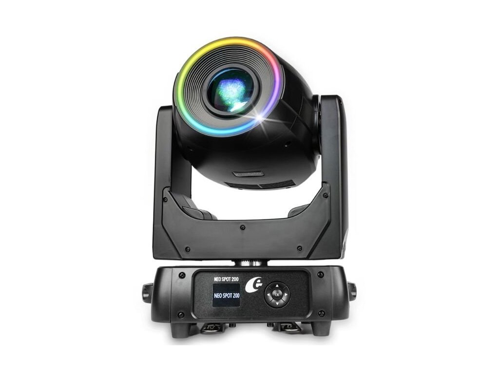Evolights NEO Spot 200W to profesjonalna ruchoma głowica LED ze źródłem światła o mocy 200 W, temperaturze barwowej 8500K i pierścieniem LED świecącym w palecie barw RGB. Głowica jest wyposażona w 8-kolorową tarczę, dwie tarcze gobo z 7 statycznymi i 9 obrotowymi wzorami kształtowania wiązki światła, a także obrotowy pryzmat do rozdzielania wiązki. Ognisko punktu świetlnego można regulować za pomocą elektronicznego ustawiania ostrości. Głowica idealnie nadaje się na sceny muzyczne, przedstawienia i pokazy, do klubów tanecznych i dyskotek, a także do dynamicznego oświetlenia zespołów weselnych i mobilnych DJ-ów.