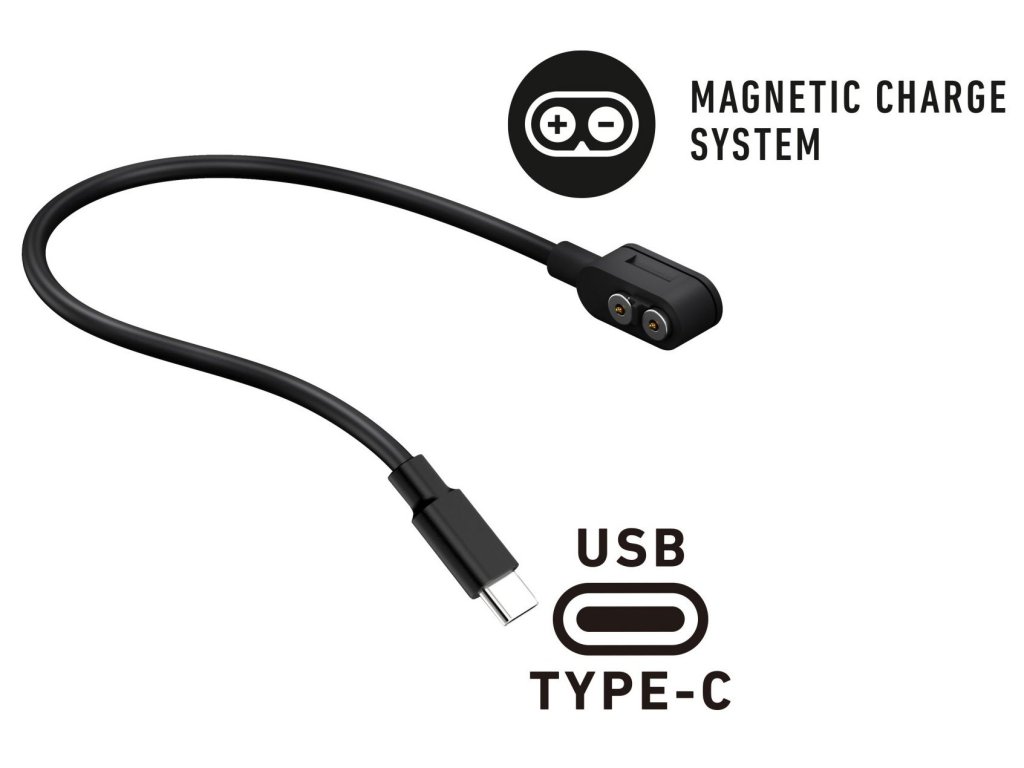 - Latarka, akumulator, silikonowa podkładka antypoślizgowa, magnetyczny kabel ładujący, pas piersiowy