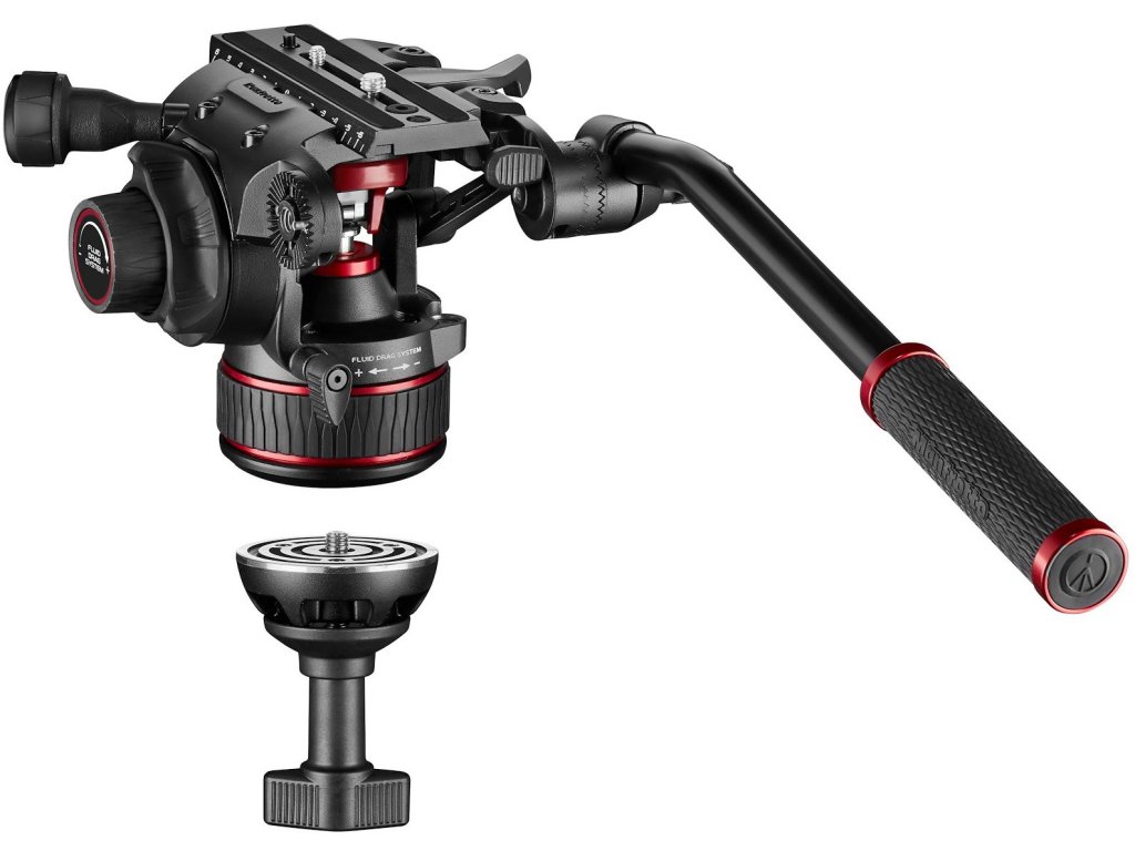 Głowica jest również wyposażona w złącze 3/8” Easy Link wyposażone w systemy antyrotacyjne zarówno do umieszczania ramion Manfrotto, jak i ramion wyposażonych w kołki lokalizacyjne ARRI. Możesz łatwo i bezpiecznie zainstalować zewnętrzny monitor lub inne akcesoria. Mechanizm bocznej blokady mocowania przesuwnej płytki umożliwia bezpieczne, szybkie i łatwe przymocowanie kamery. Głowica NITROTECH ma płaski uchwyt podstawy ze standardowym gwintem 3/8”, który jest całkowicie uniwersalny dla różnych kombinacji podpór (statyw, slider, wysięgnik lub żuraw). Głowica mocuje się do statywu dzięki półkuli 75 mm.