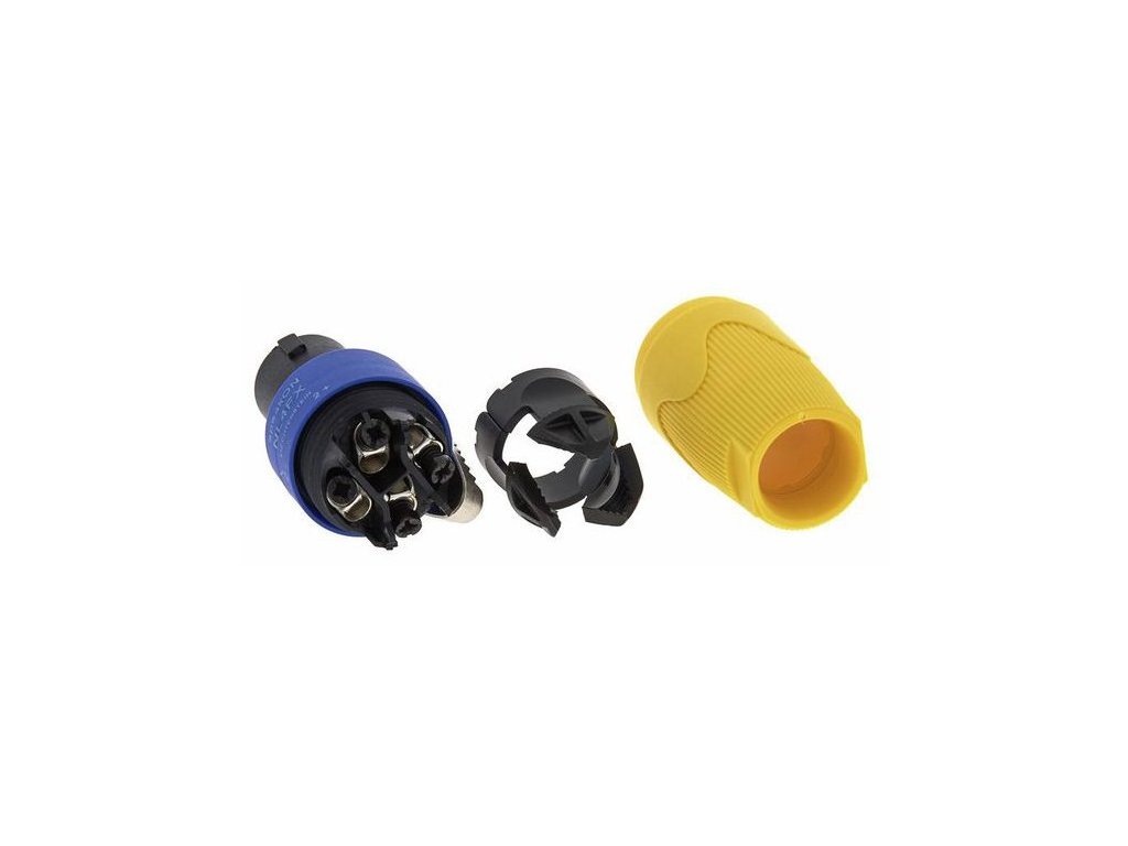 4-biegunowe złącze kablowe SpeaKON, seria SPX, żeńskie, posrebrzane styki, zaciski śrubowe do kabla, obudowa z tworzywa sztucznego, żółte oznaczenie, nowy design, zastępuje starsze złącza serii FC.