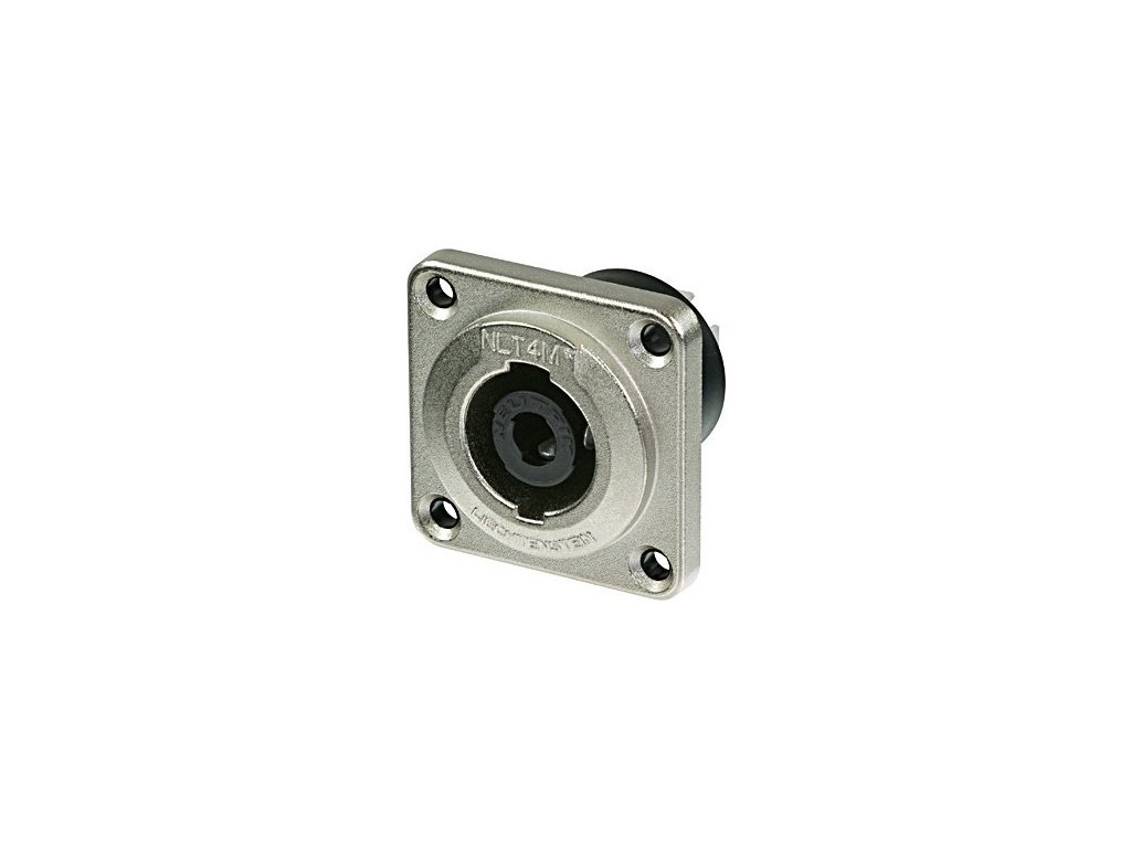 4-biegunowe gniazdo panelowe SpeaKON, seria STX, męskie, posrebrzane styki, powierzchnie lutownicze, metalowa obudowa niklowana, otwór montażowy G-Size.