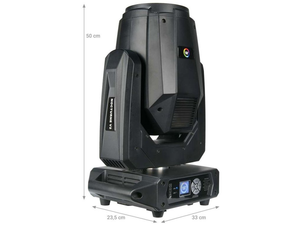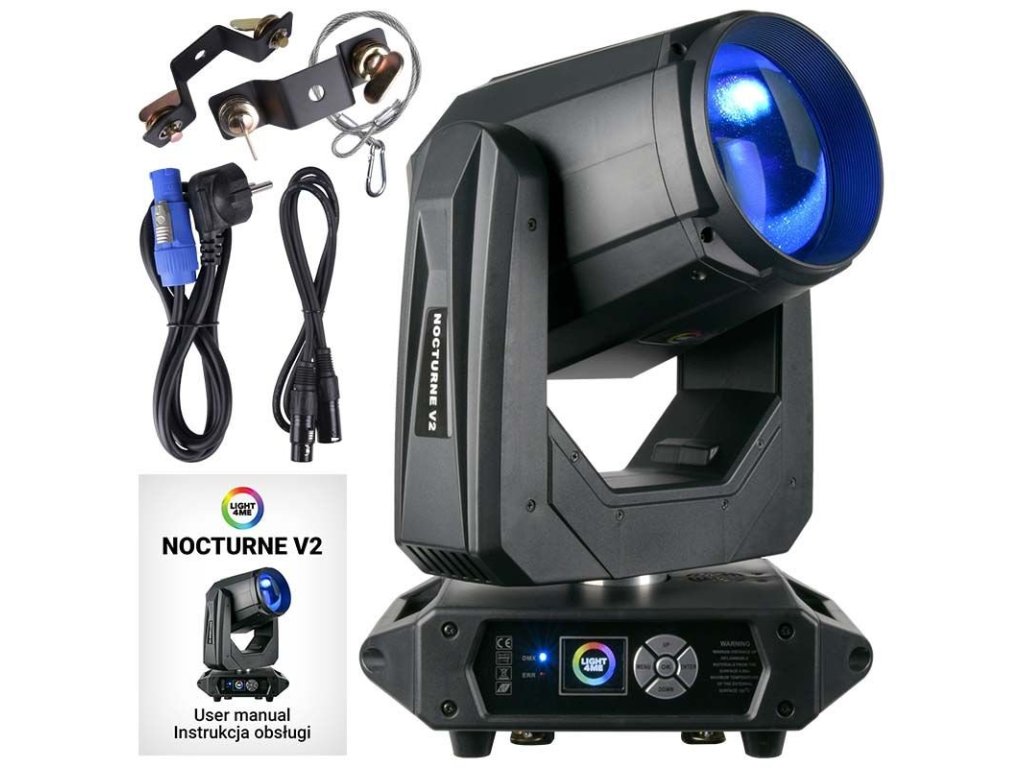 Light4Me Nocturne V2 to profesjonalna głowica obrotowa typu beam z lampą wyładowczą, która jest używana jako oświetlenie sceniczne na koncertach, przedstawieniach, pokazach, galach i różnych wydarzeniach wymagających aktywnego oświetlenia. Reflektor tworzy wąską wiązkę ze kątem świecenia zaledwie 1,5 stopnia. Jest wyposażony w bardzo wydajną białą lampę wyładowczą o mocy 295 W, dzięki czemu nadaje się również na duże sceny.