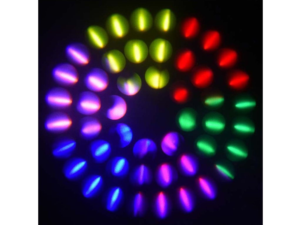 Ruchoma głowa Light4Me Nocturne V2 jest wyposażona w koło z 15 filtrami kolorów, które zabarwiają światło i mogą dodatkowo tworzyć półkolory i efekt tęczy, a także koło gobo z 13 wzorami z funkcjami Gobo Shake i Gobo Scroll. Dużą zaletą głowy są 2 pryzmaty i możliwość ich nakładania się. Do dzielenia wiązki światła można użyć 2 pryzmatów - liniowego 8-fasetowego i rozszerzonego obrotowego 8+16+24-fasetowego, co pozwala stworzyć imponujące, ruchome rozety świetlne. Całość uzupełnia filtr frost, zmotoryzowany liniowy focus oraz szybka migawka zdolna do tworzenia efektów stroboskopowych.