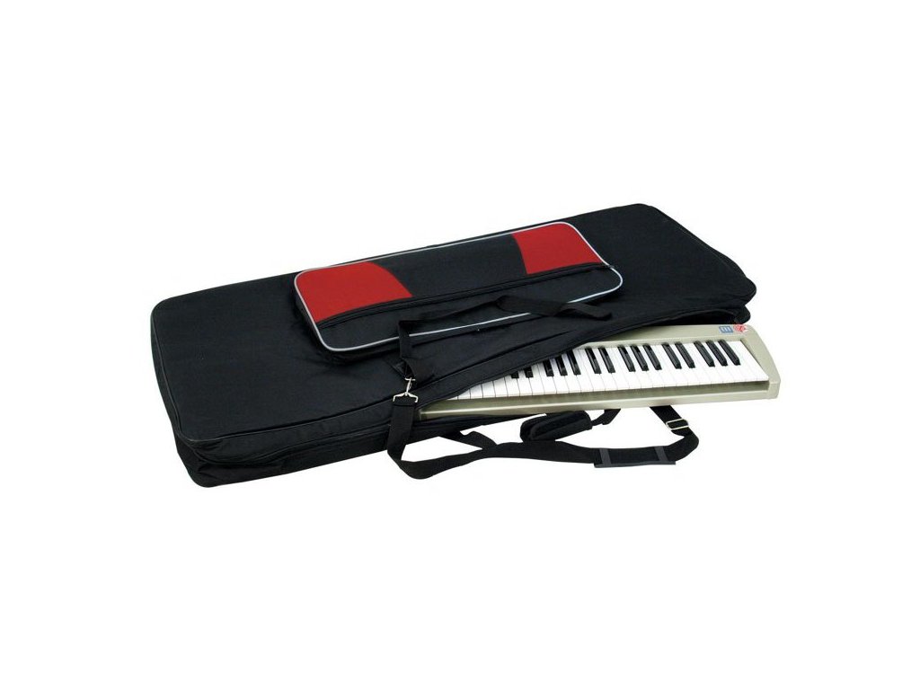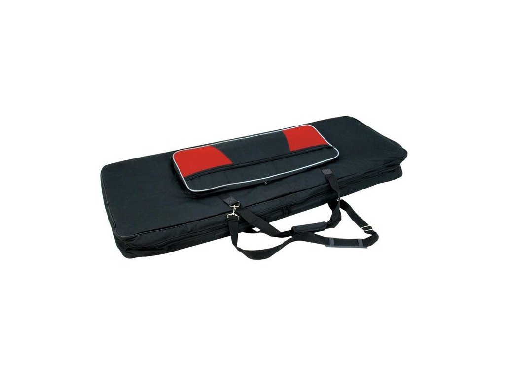 Pokrowiec na klawisze, czarny nylon, kieszeń zewnętrzna. Wymiary 130 x 45 x 17 cm.