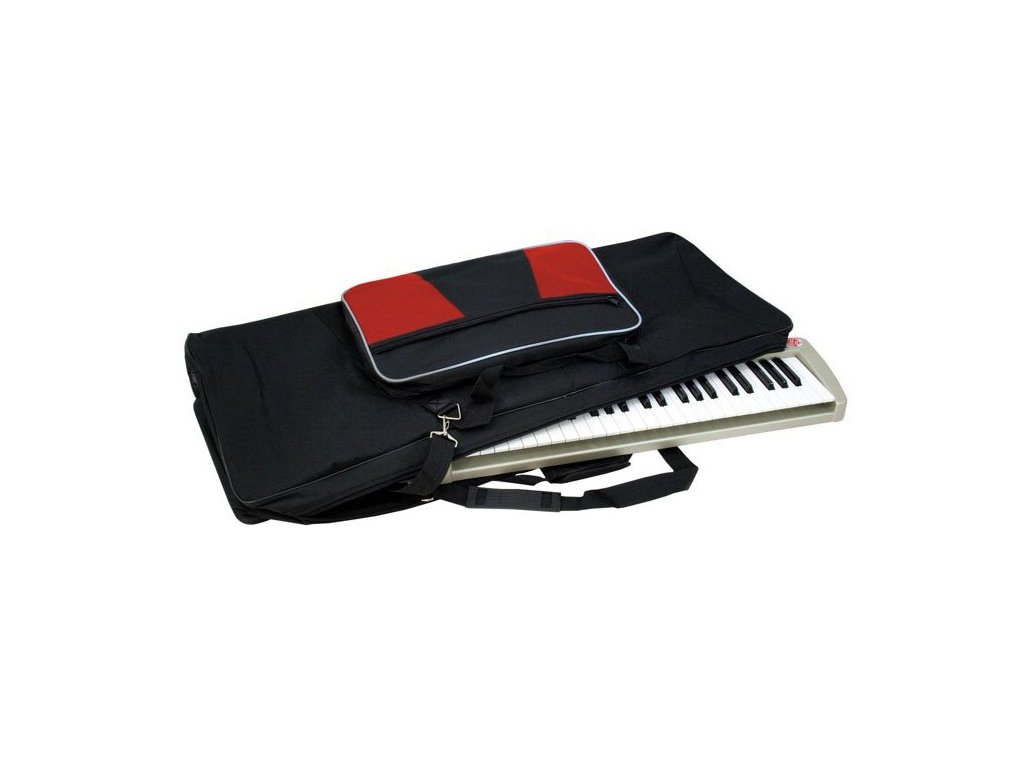 Pokrowiec na klawisze, czarny nylon, kieszeń zewnętrzna. Wymiary 105,5 x 39 x 15,5 cm.