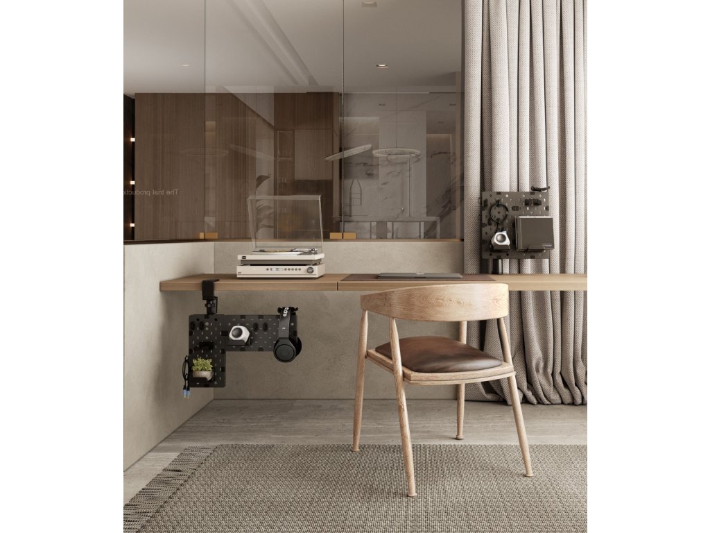 Organizer na biurko Mozos OA1 z perforowaną konstrukcją rozwiązuje problem z przechowywaniem słuchawek, kabli i innych drobnych przedmiotów oraz akcesoriów, które zwykle walają się na biurkach i w ich otoczeniu. Mozos OA1 można łatwo przymocować do blatu biurka (do szerokości blatu 5 cm), zyskując cenną przestrzeń do przechowywania bez zmniejszania powierzchni roboczej.