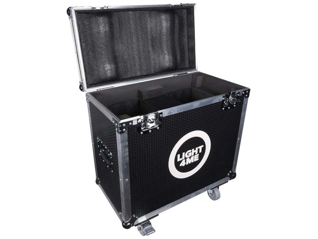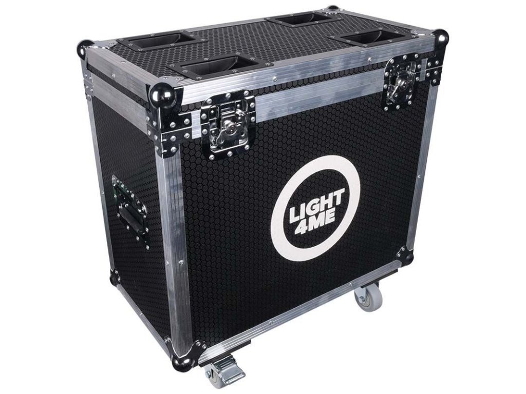 Light4me Nocturne V2 Case to profesjonalny futerał transportowy na głowicę ruchomą Nocturne V2, który może pomieścić 2 jednostki tego typu lub inne urządzenia o podobnych wymiarach jak ta głowica. Kufer jest wykonany z mocnej sklejki pokrytej czarnym, wodoodpornym materiałem o strukturze plastra miodu. Krawędzie kufra są wzmocnione aluminiowymi profilami, a rogi stalowymi okuciami. Wyposażony jest w dwa uchwyty, które umożliwiają jego łatwe przenoszenie, oraz cztery obrotowe kółka (z których dwa posiadają aretację), które ułatwiają przemieszczanie i transport urządzenia. Pokrywa otwiera się z jednej strony. Jest zamykana na dwa solidne zamki motylkowe. Wewnątrz znajdują się dwie przegrody na ruchome głowice Light4Me Nocturne oraz węższa przegroda na akcesoria.