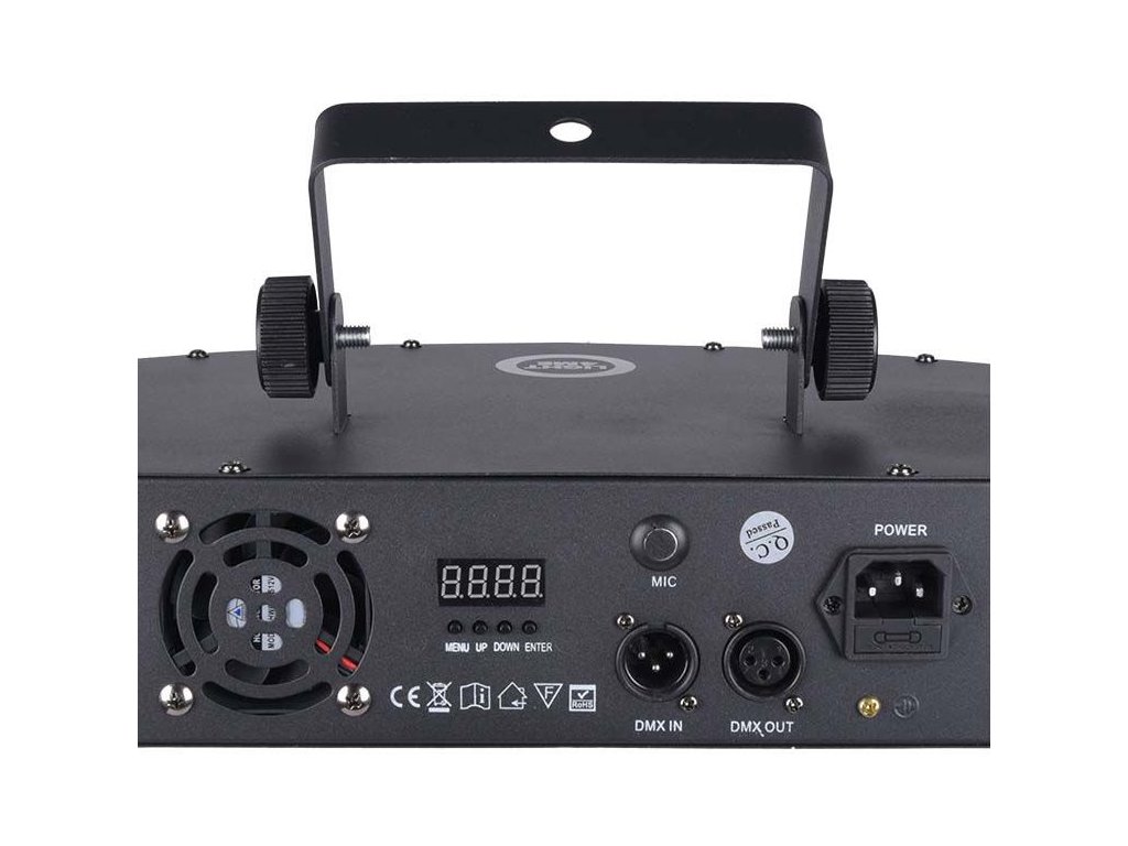 - Tryby pracy: automatyczny, dźwięk, master/slave, DMX