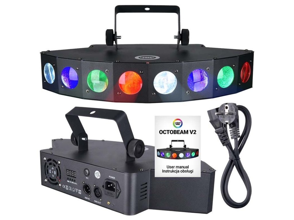 Light4Me Octobeam V2 to popularny efekt dyskotekowy, który idealnie sprawdza się w klubach tanecznych i dyskotekach, podczas różnego rodzaju imprez rozrywkowych, a także jako oświetlenie sceniczne dla mobilnego DJ-a, zespołu muzycznego lub firmy organizującej imprezy. Urządzenie emituje dynamicznie poruszające się promienie światła typu wiązki, które tworzą imponujące środowisko świetlne podczas różnego rodzaju wydarzeń.