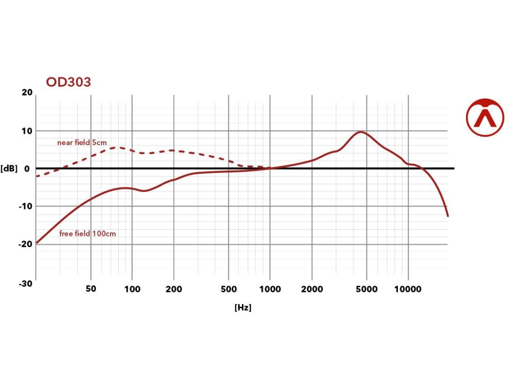 OD303 wykorzystuje również renomowaną technologię Open Acoustic firmy Austrian Audio, która zapewnia optymalnie ukształtowaną superkardioidalną charakterystykę kierunkową w szerokim paśmie częstotliwości z doskonałą stabilnością sprzężenia zwrotnego. Nawet powszechnie stosowana technika trzymania mikrofonu blisko główki nie wpływa na dźwięk ani go nie zmienia. Tę cechę docenią szczególnie inżynierowie dźwięku FOH!