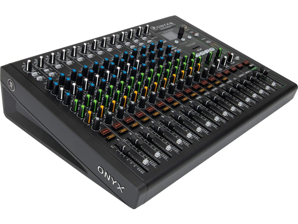 Analogowy mikser premium ONYX16 firmy Mackie nadaje się do nagłaśniania występów na żywo w klubach muzycznych, w salach prób, do nagrywania w domu lub na mniejsze imprezy różnego typu. Mikser oferuje możliwość wielośladowego nagrywania, profesjonalne wbudowane efekty i presety dla łatwego ustawienia.