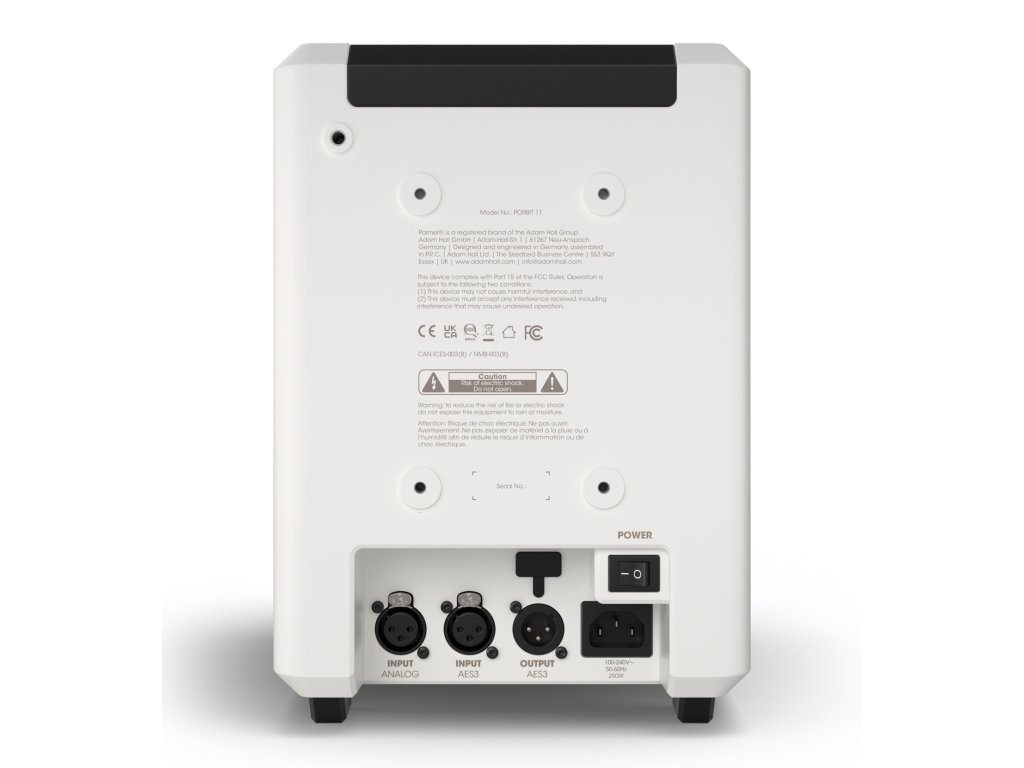 - Wejścia: 1x analog (XLR-M), 1x AES3 (XLR-M)