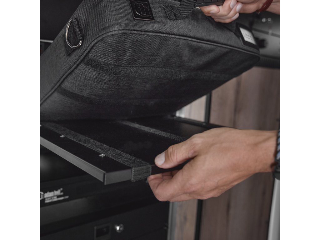 - Rzep na spodzie torby do bezpiecznego mocowania w przegrodzie rackowej