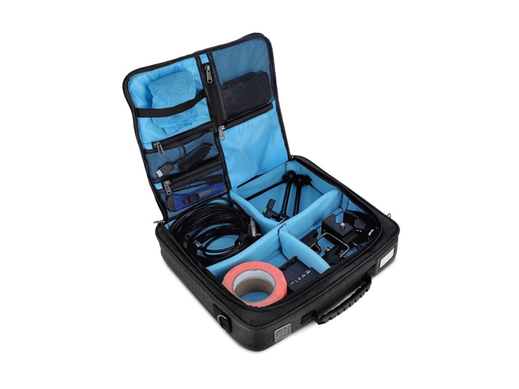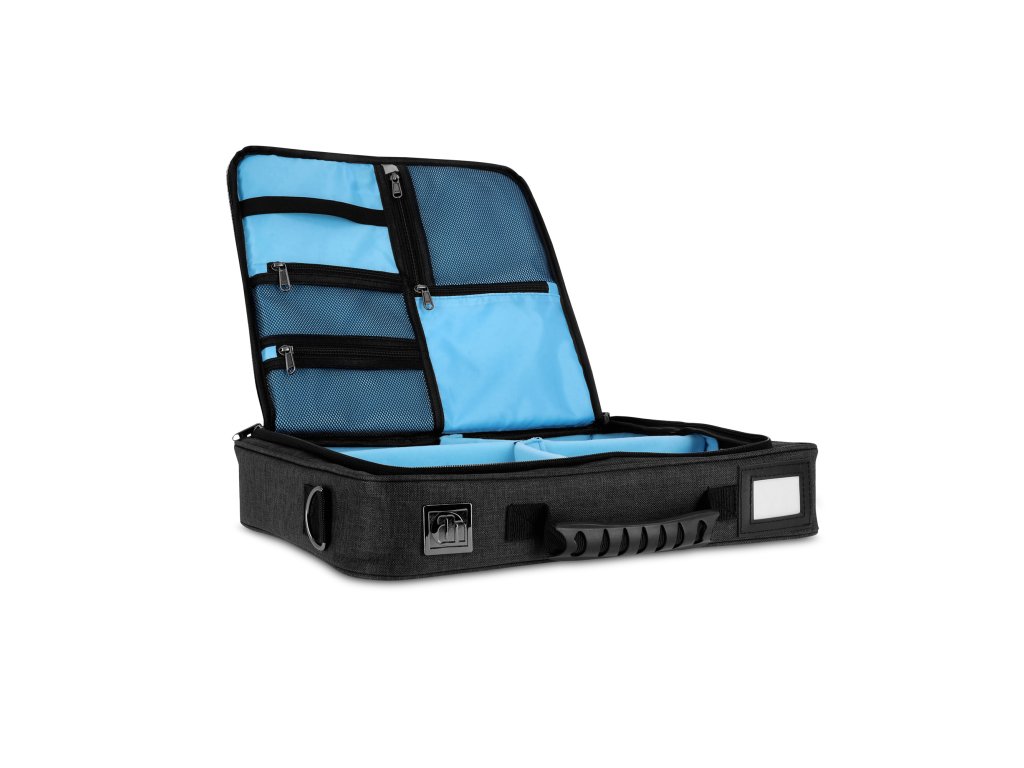 Dzięki rzepowi na spodzie torbę można bezpiecznie zamocować w szafie rackowej lub na niej (odpowiadająca druga część rzepu jest dostarczana w rolce w zestawie). Ergonomiczny uchwyt i odpinany pasek na ramię zapewniają wygodne noszenie, nawet w podróży. Idealna dla wszystkich, którzy chcą bezpiecznie i przejrzyście przechowywać akcesoria, niezależnie od tego, czy na imprezie, czy w podróży.