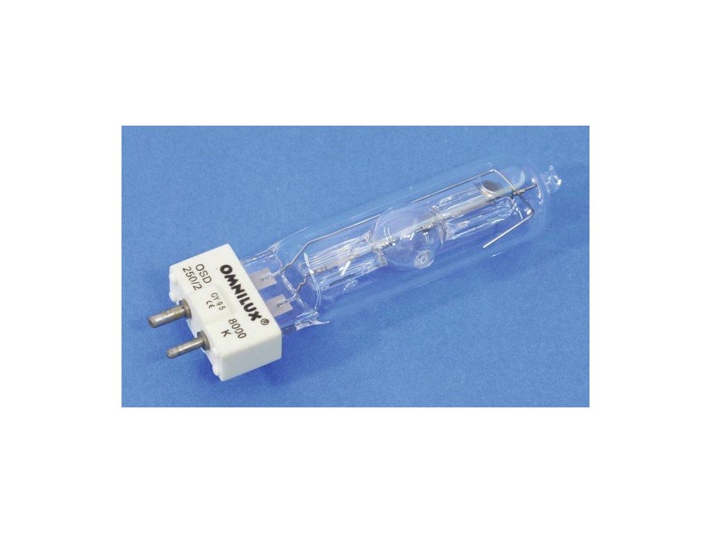 Żarówka z trzonkiem GY9.5, o mocy 250 W i temperaturze barwowej 8000 K. Ekstremalna moc światła. Najlepsze odwzorowanie kolorów. Światło jest wytwarzane między dwiema elektrodami. Spektrum podobne do światła dziennego.