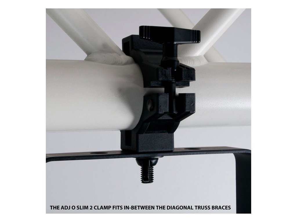 Zacisk O Slim 2 firmy ADJ został zaprojektowany tak, aby pasował między przekątne w kształcie litery V kratownicy, gdzie nie pasują zaciski o większych wymiarach. Może być również używany jako tradycyjny zacisk O do zawieszania mniejszych obiektów do 10 kg. O Slim 2, podobnie jak zacisk O-Clamp firmy ADJ, zaciska się wokół całej 2-calowej rury kratownicy, chroniąc kratownicę przed zarysowaniem, przetarciem i wgnieceniem.