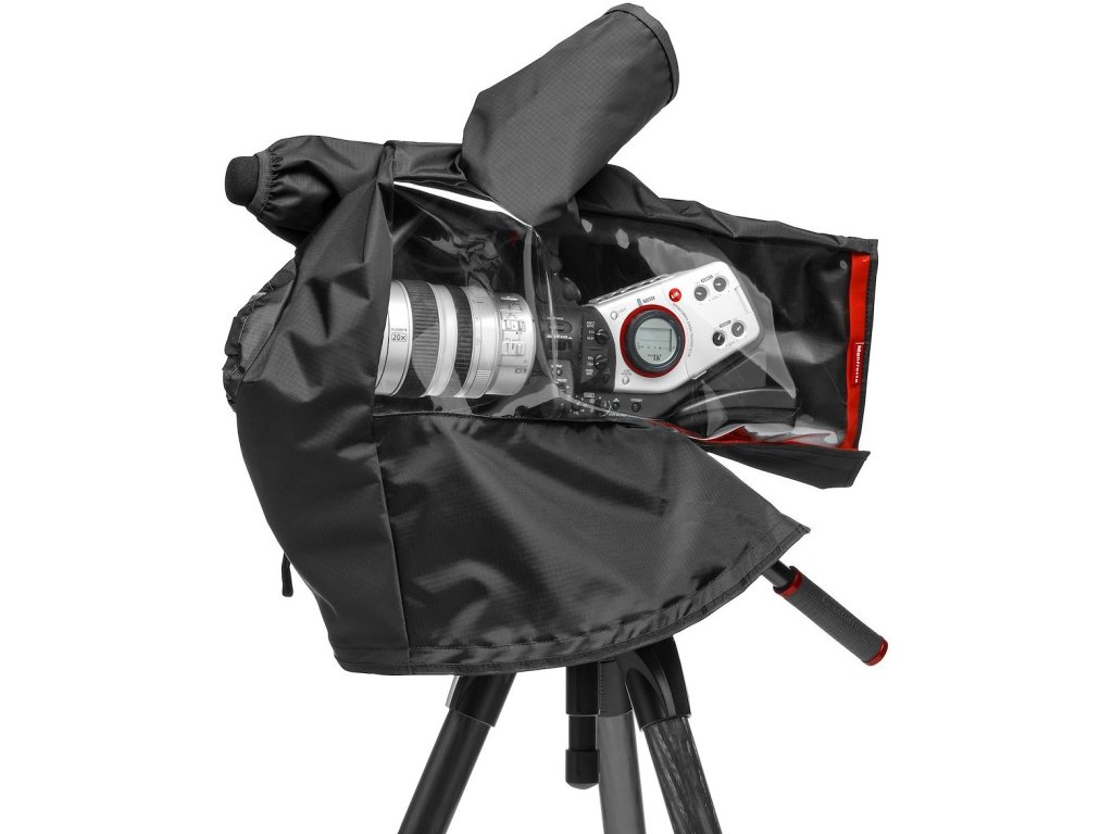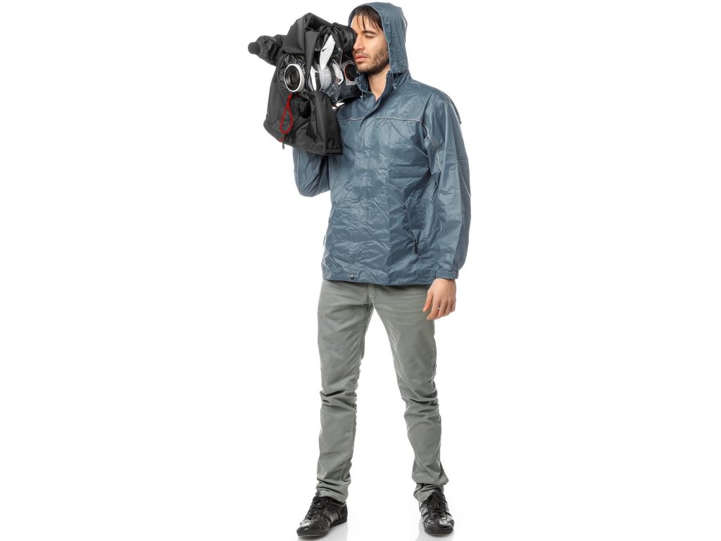 Osłona przeciwdeszczowa odpowiednia do małych i średnich kamer wideo lub aparatów fotograficznych. Wykonana jest z wodoodpornego materiału RipStop. Pogoda nie będzie już Twoim wrogiem, dzięki czemu będziesz mógł zabrać swoje urządzenie gdziekolwiek zechcesz, nie martwiąc się o uszkodzenia spowodowane złym lub nieprawidłowym opakowaniem. Twoje urządzenie pozostanie chronione przed niekorzystnymi warunkami pogodowymi, a ponadto elementy sterujące aparatu pozostaną dostępne przez przezroczyste panele z termoplastycznego poliuretanu (TPU). Ta osłona przeciwdeszczowa nadaje się również do przechowywania, chroni urządzenie przed niepożądanym kurzem. Dolna strona jest pozostawiona otwarta, dzięki czemu można ją łatwo używać w połączeniu ze statywem.