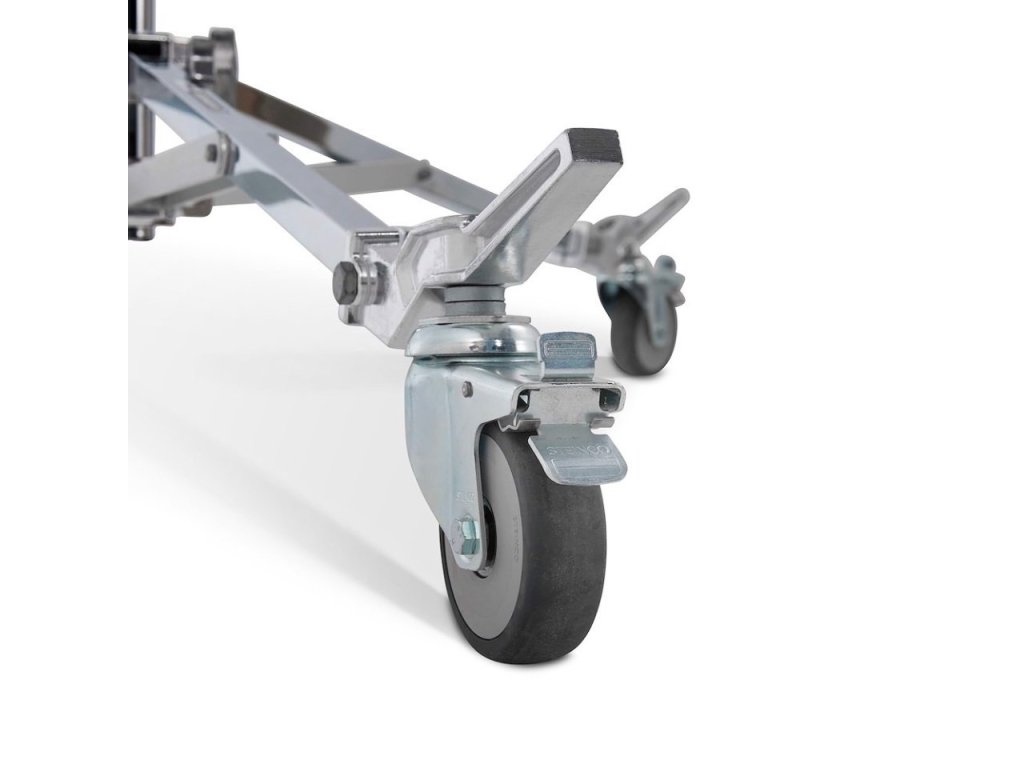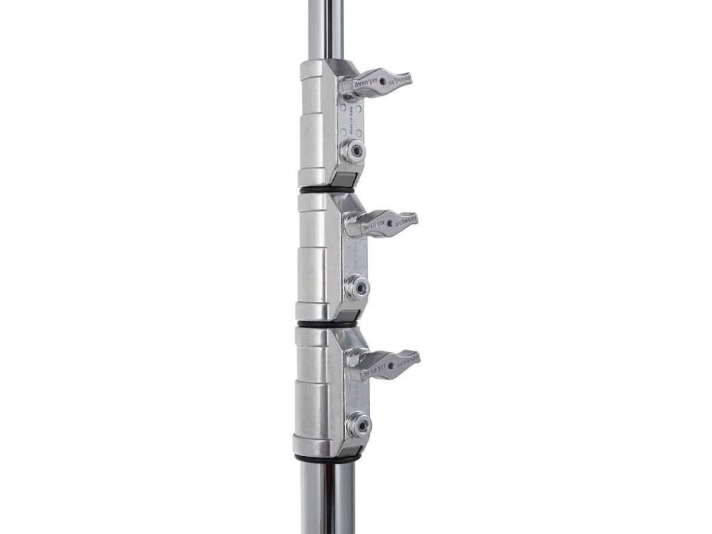 Statyw z wbudowaną głowicą chwytającą do stosowania z tyczkami podpierającymi, rurami i górnymi ramami. Ten statyw z chromowanej stali ma 4 sekcje. Jest również wyposażony w kółka z hamulcami dla łatwego transportu. Ten statyw może udźwignąć maksymalne obciążenie 40 kg i osiąga maksymalną wysokość 5,78 m.