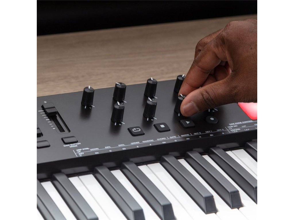 - Wejście dla pedału sustain, arpeggiator, note repeat, funkcje Smart Chord i Smart Scale