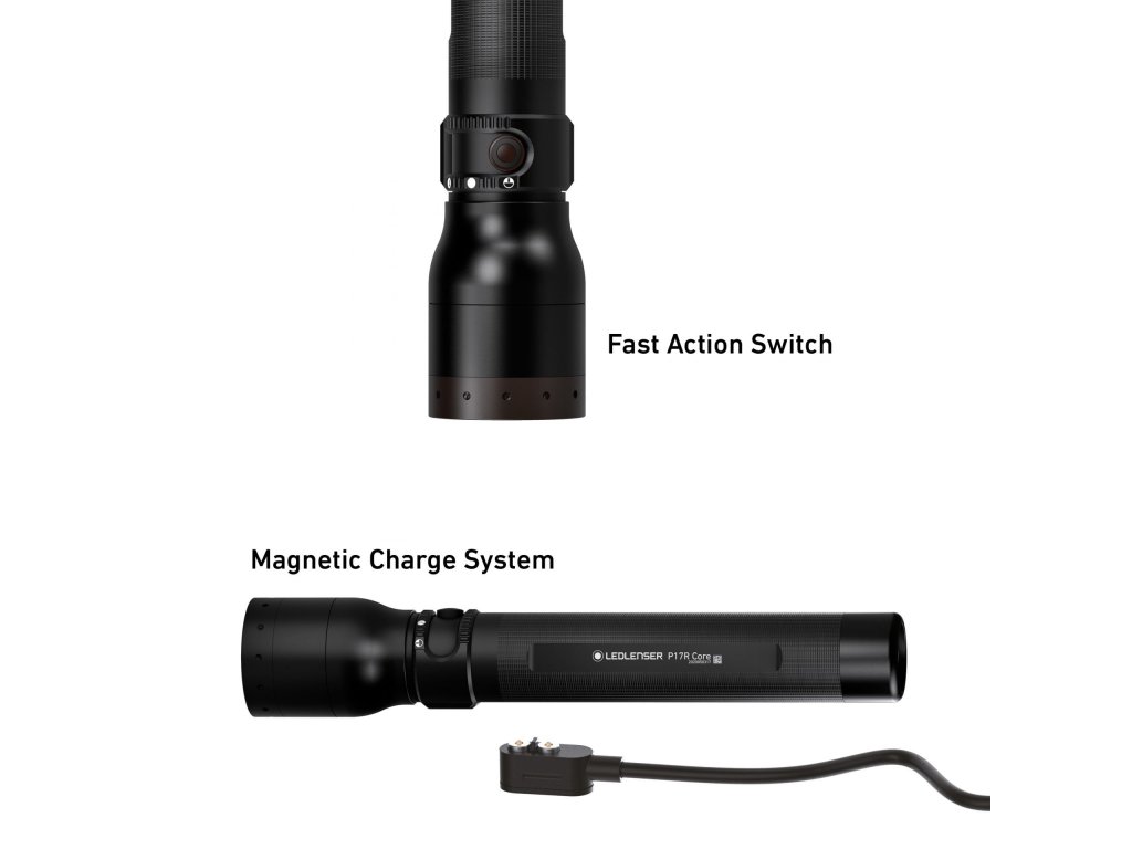 P17R Core to niezwykle niezawodna i jasna latarka akumulatorowa. Jest bardzo dobrze zaprojektowana pod względem ergonomicznym i można ją łatwo obsługiwać za pomocą przełącznika Fast Action Switch. Oferuje szybkie ustawianie ostrości stożka światła za pomocą technologii Advanced Focus System, a także płynne ściemnianie mocy światła. Smart Light Technology umożliwia indywidualne ustawienie latarki dokładnie według potrzeb użytkownika. Energię dla tej niezwykle wytrzymałej latarki zapewnia akumulator Safety Ytrion Cell, jedno z najbezpieczniejszych i najbardziej wytrzymałych ogniw akumulatorowych na rynku. Dzięki swoim wspaniałym funkcjom P17R Core jest popularnym narzędziem, z którego korzystają np. pracownicy ochrony.