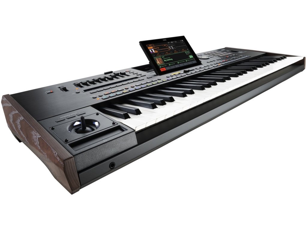 Pa5X – 61 posiada półważoną klawiaturę z aftertouch dla większej ekspresji oraz 8-calowy uchylny ekran dotykowy z bardzo udanym graficznym interfejsem użytkownika (GUI). Sercem instrumentu jest wysokowydajny procesor dźwiękowy EDS-XP, który oferuje 24 stereofoniczne oscylatory i polifonię 160 głosów, a także wprowadza nowe, zaawansowane funkcje, takie jak Round-Robin dla perkusji i instrumentów perkusyjnych, płynne przejścia Smooth Sound Transition, funkcja Sound-Controller 3 i wiele innych. Pa5X jest wyposażony w w pełni programowalną sekcję kontrolerów z 9 przyciskami i 9 suwakami. Możesz przypisać mu dowolną funkcję, od głośności miksera po ustawienie cięgła, przez wyciszenie mikrofonu i inwersję basów, aż po polecenia przewijania tekstu i inne. Dostępna jest gama kontrolerów do ekspresyjnej gry w czasie rzeczywistym oraz technologia Korg DNC (Defined Nuance Control), która jest źródłem wielu szczegółów w brzmieniu instrumentów muzycznych. Fadery, przełączniki, rzeczywiste i wirtualne matryce elementów sterujących w czasie rzeczywistym, joystick i kontroler ribbon można przypisać do modulacji dowolnego parametru dźwięku.
