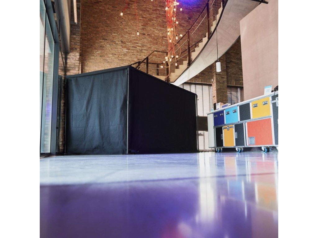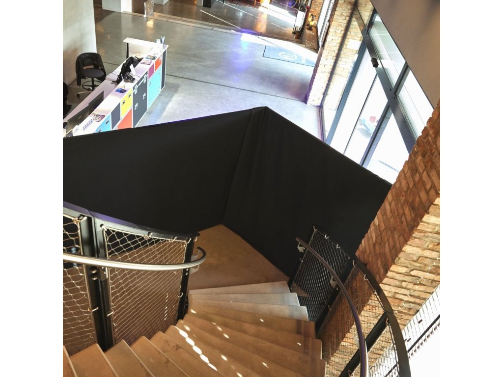 Teleskopowy drążek PAD T, wykonany z aluminium, rozciąga się od 190 cm do 350 cm, co pozwala na dostosowanie szerokości systemu. Dzięki składanym przegubom na obu końcach drążek ułatwia prosty i elastyczny montaż bez konieczności użycia drabiny lub pomocy innych osób. Czarna kurtyna Molton PAD C B 1 ma wymiary 3,50 m x 2,55 m i jest wyposażona w praktyczny pasek na rzep ułatwiający przymocowanie do drążka PAD T. Ta trudnopalna zasłona, wykonana z materiału EURO molton, charakteryzuje się nieprzezroczystością 320 g/m² i całkowitą wagą poniżej 3 kg.