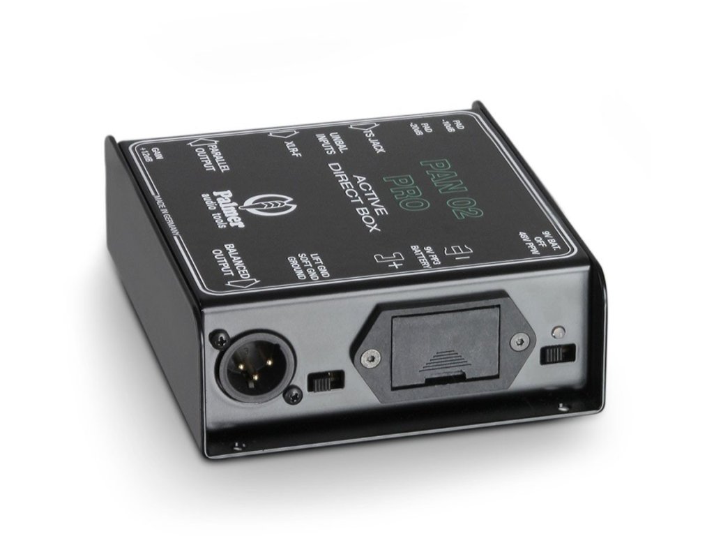 Pierwszorzędny aktywny DI-box z niesymetrycznym wejściem XLR, potrójnym tłumikiem (-10, -20, -30 dB), przełączanym wzmocnieniem (12 dB) i maksymalnym napięciem wyjściowym +20dB oraz miękkim Ground-Liftem.