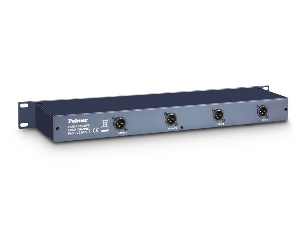 Pasywny 4-kanałowy DI BOX w obudowie 19". Każdy kanał ma wejście jack z równoległym wyjściem do pętli sygnału. Przełącznik tłumienia (-30 dB) umożliwia opcjonalne podłączenie sygnałów liniowych lub głośnikowych. Dane techniczne są identyczne z danymi modelu PAN 01. Wszystkie złącza i przełączniki znajdują się na przednim panelu 1 U, wyjście XLR jest dodatkowo dostępne jako równoległe gniazdo z tyłu.