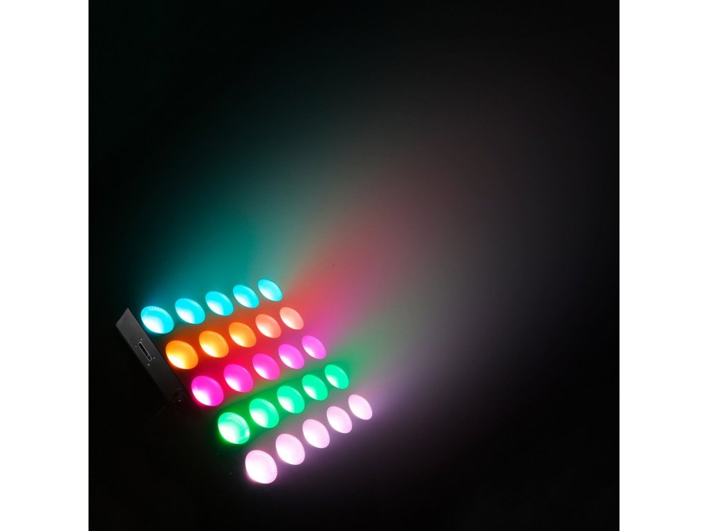 Dzięki matrycy 5 x 5 10 W RGB LED, rozproszeniu wiązki 40° i wydajności bez migotania, Cameo Matrix Panel tworzy ekscytujące efekty blinder, chase i strobo. Dzięki wydajnemu sterowaniu pojedynczymi pikselami jest idealnym wyborem do mapowania znaków alfabetu, cyfr i pełnych wiadomości. Wpuszczone zatrzaski ze wszystkich stron umożliwiają łączenie wielu paneli w duże, imponujące tła.