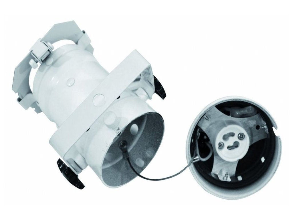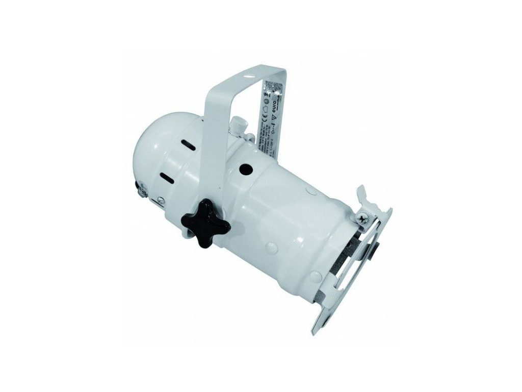 Mini reflektory punktowe PAR 16 do źródeł światła z trzonkiem GU-10 i maksymalną mocą 75W. Długość reflektora ok. 15cm, dostarczane wraz z uchwytem do zawieszania, ramką na filtry kolorowe i kablem zasilającym (230V). Biała kolorystyka.