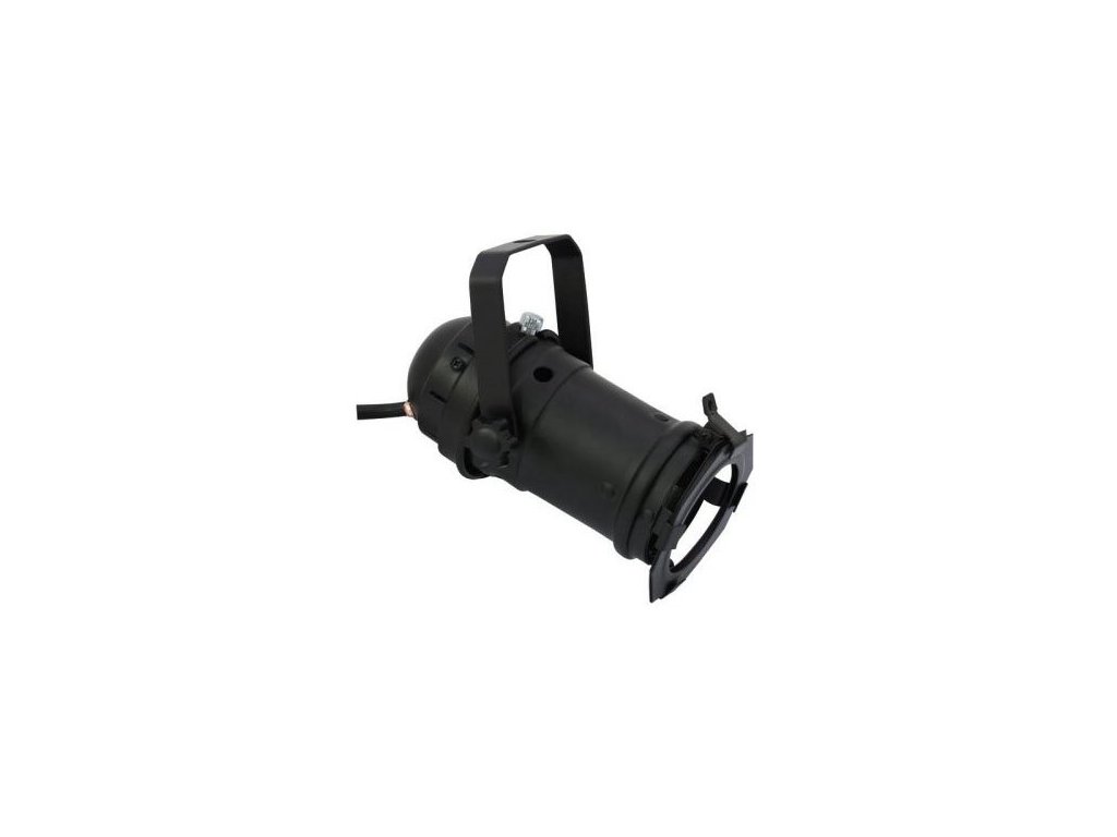 Mini reflektory punktowe PAR 16 do źródeł światła z gniazdem GU-10 i maksymalną mocą 75 W. Długość reflektora ok. 15 cm, dostarczany wraz z uchwytem do zawieszania, ramką na filtry kolorowe i kablem zasilającym (230 V). Czarna wersja kolorystyczna.
