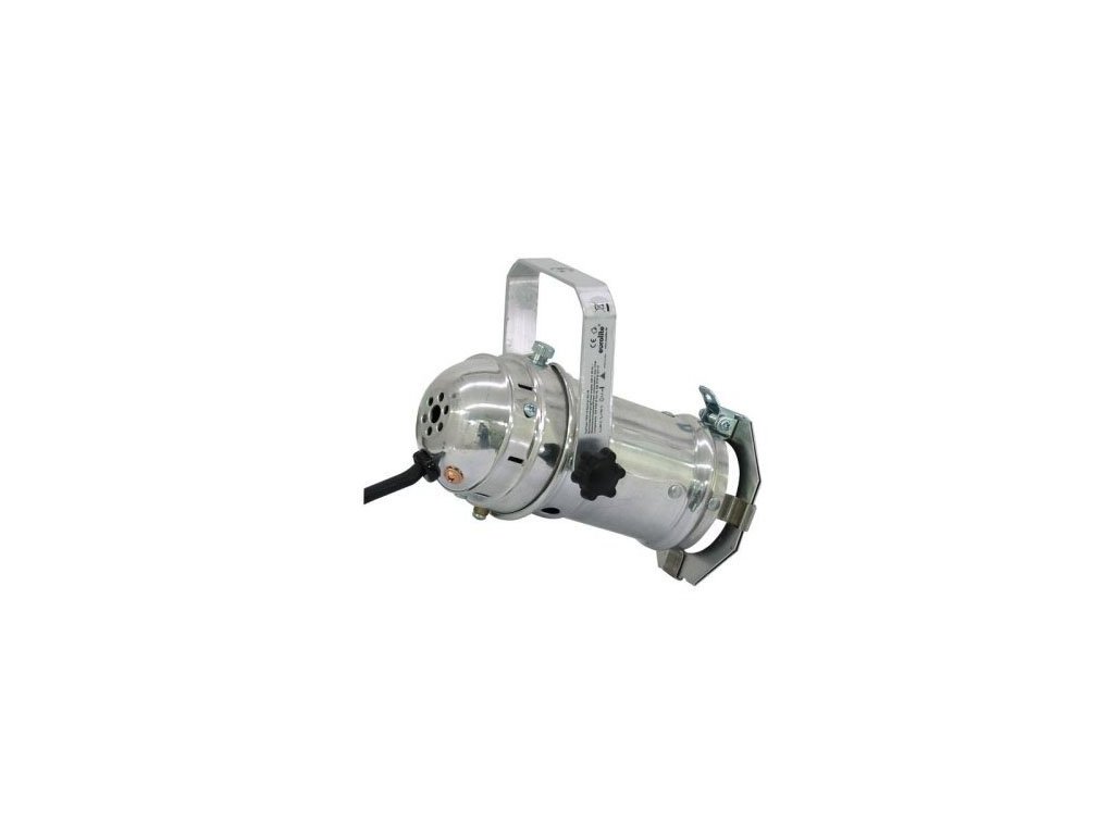 Mini reflektory punktowe PAR 16 do źródeł światła z gniazdem GU-10 i maksymalną mocą 75 W. Długość reflektora ok. 15 cm, dostarczany wraz z uchwytem do zawieszania, ramką na filtry kolorowe i kablem zasilającym (230 V). Srebrne wykończenie kolorystyczne.
